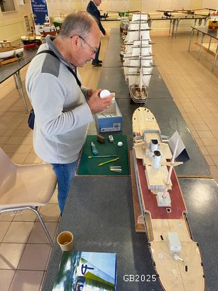 L'espace "simulateur de vol", un modéliste du club en action, information et explications concernant un navire, d'autres voitures du club