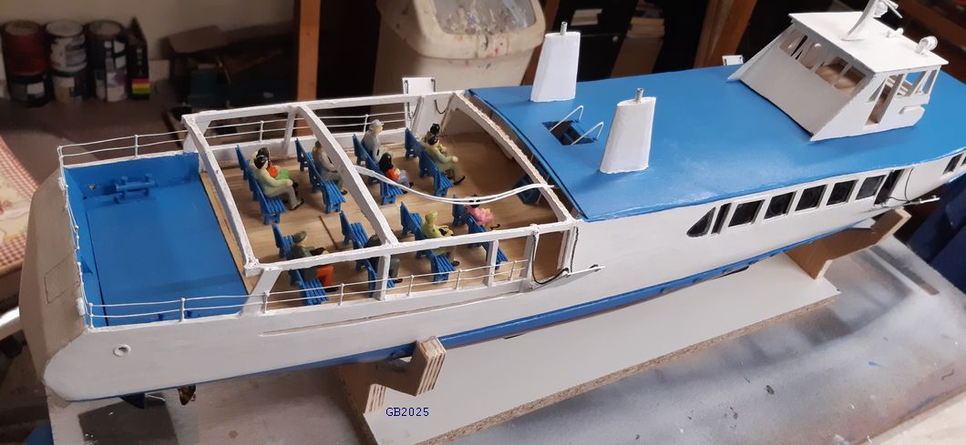 Nouvelles peintures + mise en place du mât radar et à droite la partie passagers avant la fermeture du toit arrière.