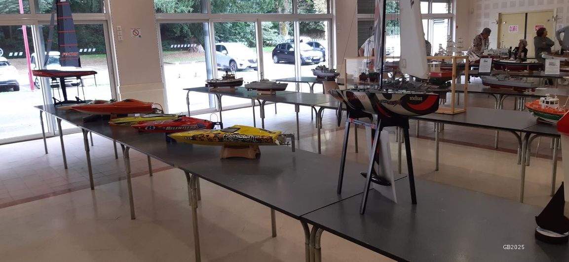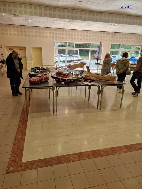 L'espace "simulateur de vol", un modéliste du club en action, information et explications concernant un navire, d'autres voitures du club