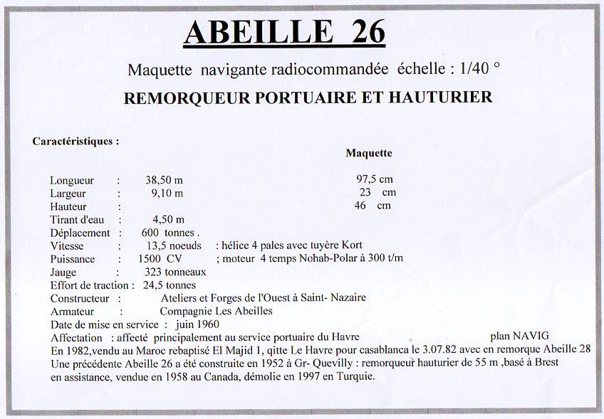 avec en remorque l'Abeille 28. Une précédente Abeille 26 a été construite en 1952 à Grd-Quevilly : Remorqueur hauturier de 55 m basé à Brest