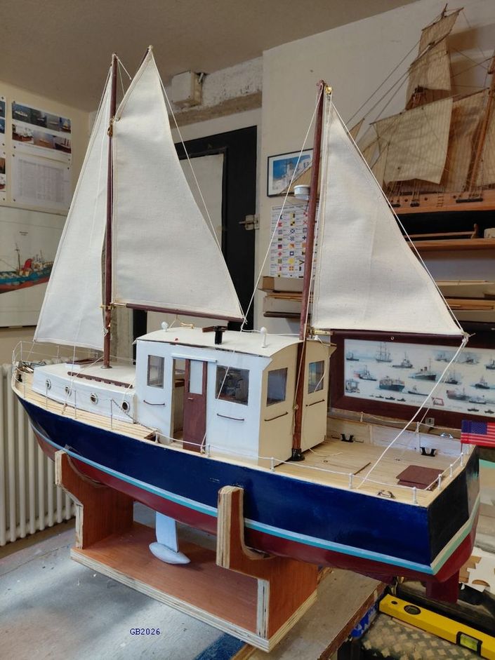 Phase terminale de sa construction après ajout de l'accastillage, des voiles, ainsi que le fonctionnement de la voile arrière