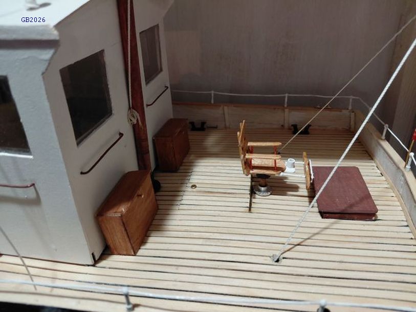 Repositionnement de la cabine avant puis montage des ensembles du pont avec ponçage de la coque et mise en place des 2 mâts.