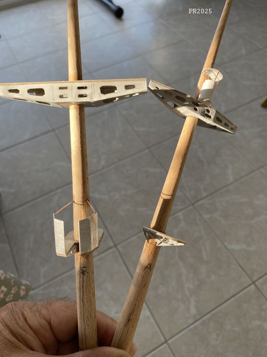 Les superstructures sont en cours d'équipement, les mats de formes particulières sont réalisés à la perceuse.