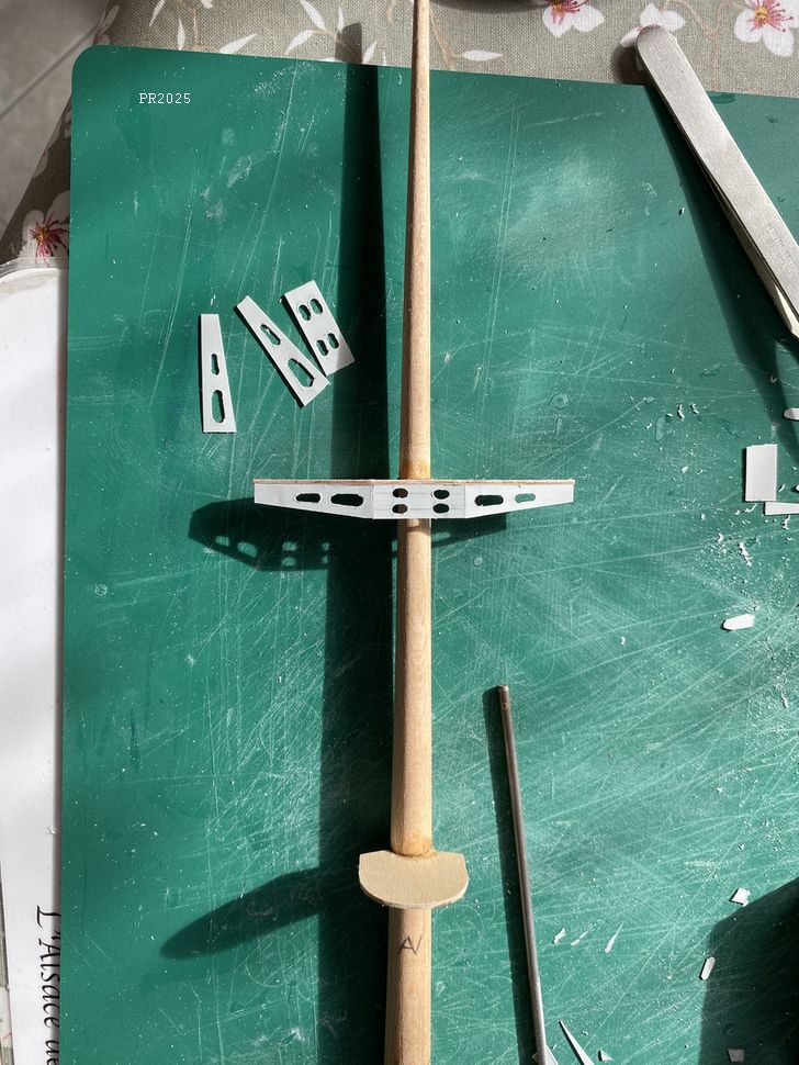 Le lattage du 2ème pont était enfin terminé et que j’avais en parallèle travaillé sur les mats pour me changer les idées.