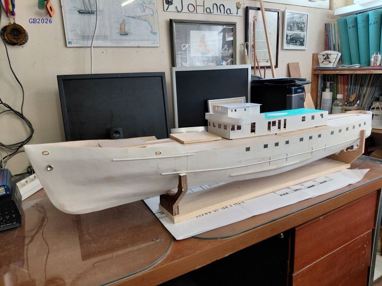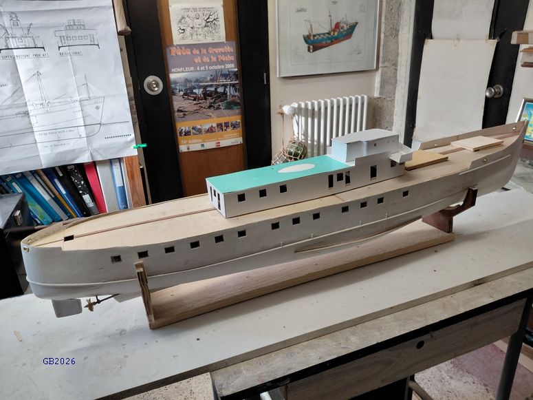 La partie supérieur commence à prendre forme, le pont est fermé, les plaques des soutes sont réalisées.